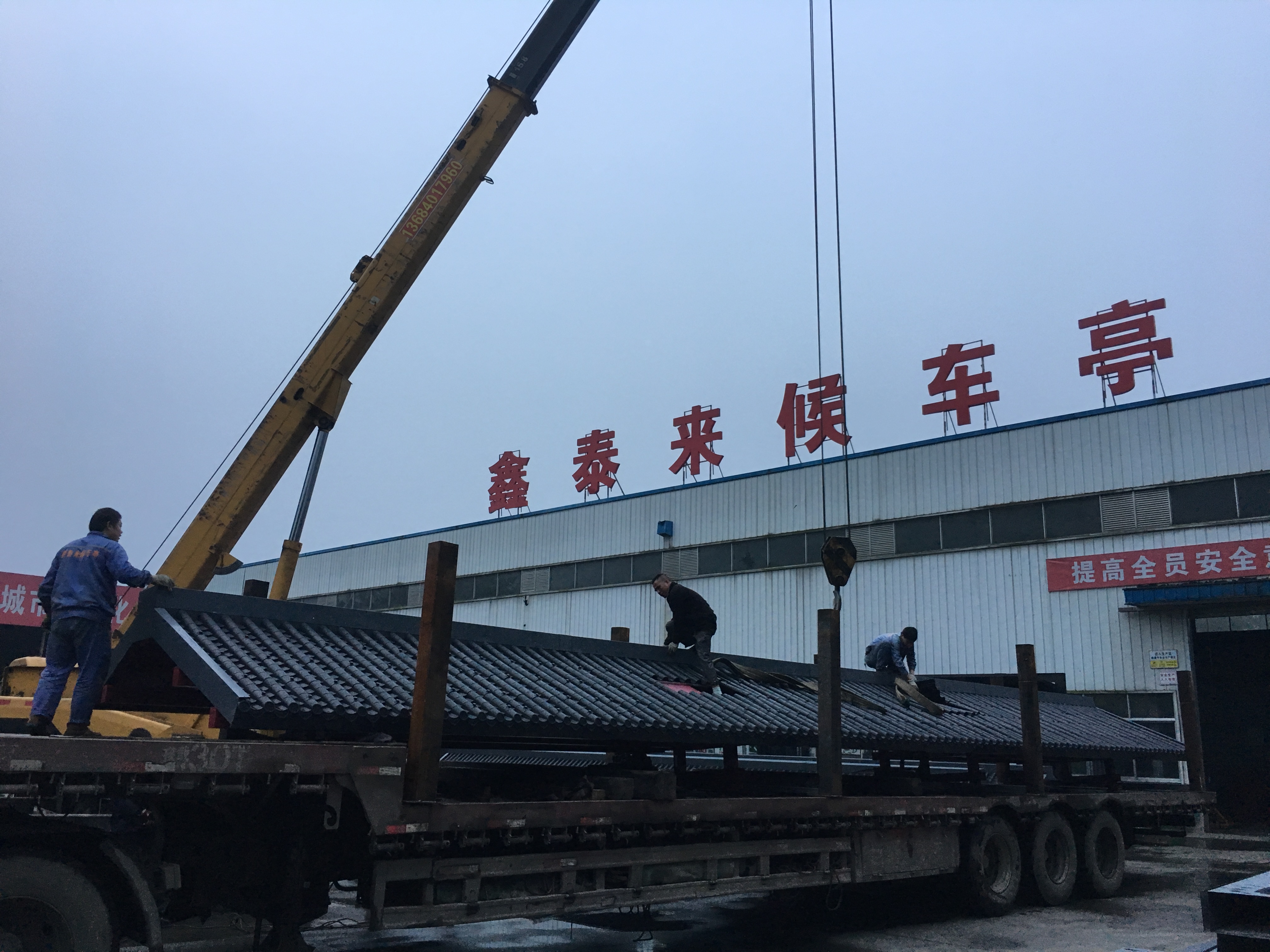 成都市一環道路綜合整治工程進行中,因現場車流量巨大等諸多不利因素,導致我司公交站臺的安裝工作全部在夜間施工完成。高效率的人力計劃和安排布署,在工程部精兵強將通力配合下,持續每夜兩座的進展速度,一座座高大的仿古公交站臺拔地而起,讓早起的當地市民驚訝不已 ,紛紛贊嘆它的壯觀和神速。