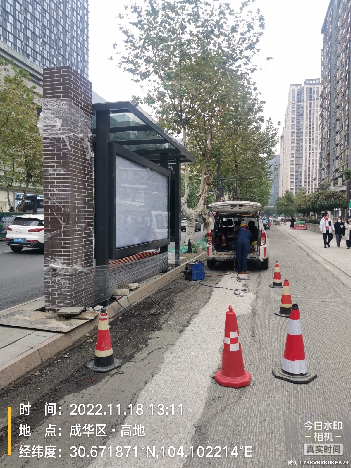 【鑫泰來候車亭】在成都市區又一智慧公交站棚案例完美呈現:55寸LCD電子站牌、新款站牌燈箱