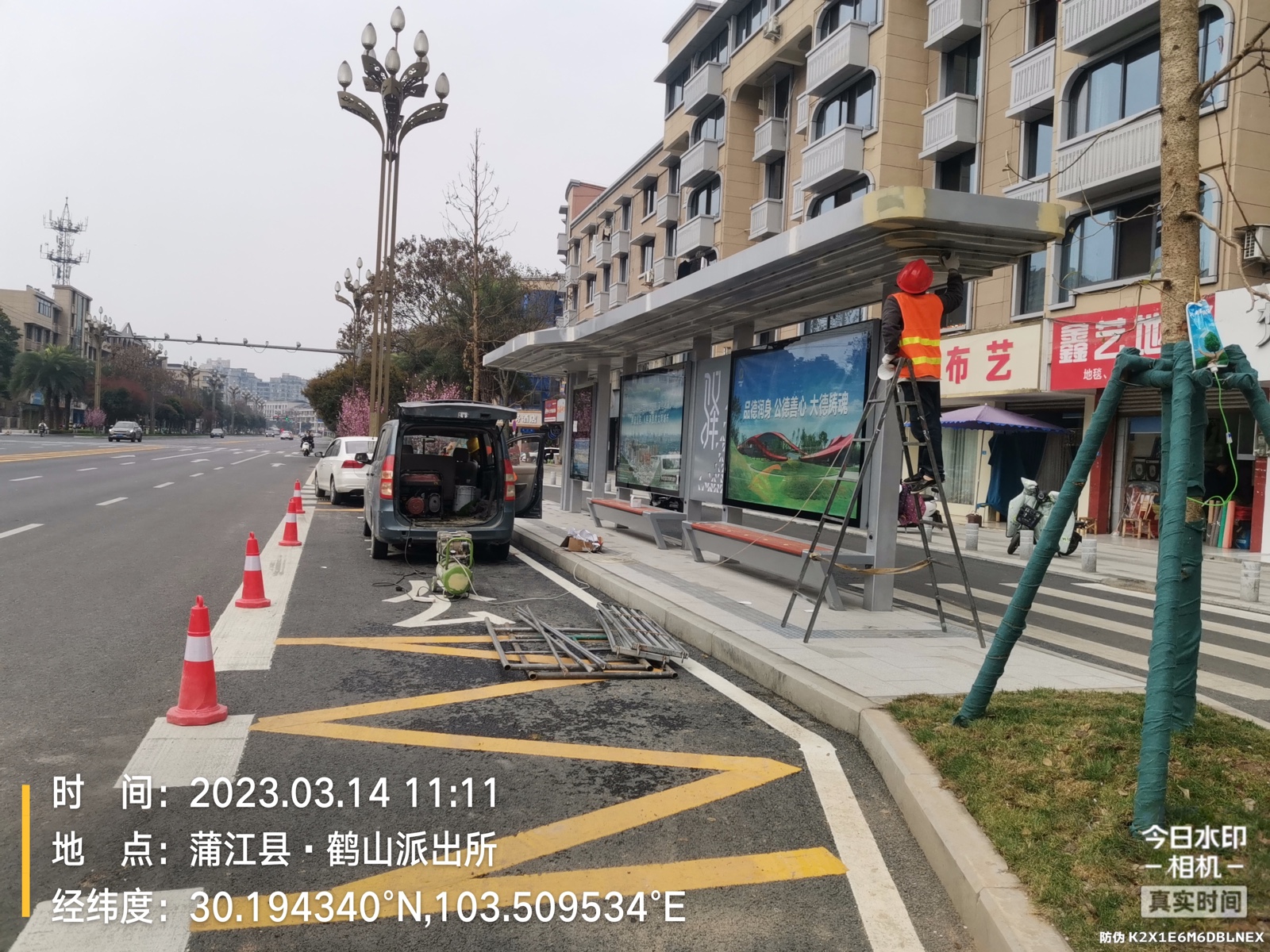 由我公司承建的四川蒲江朝陽大道、鶴山北路城市道路空間一體化改造項目--智慧公交站臺工程圓滿完工,造型呈一字形公交站亭,頂棚融入LED氛圍燈照明、每座站臺實現安全監控、電子報站、座凳充電、地域特色LOGO。