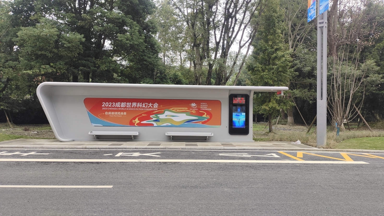 為迎接第81屆世界科幻大會的順利召開,由我公司承建的成都市郫都區科幻大道公交站臺改造提升工程,歷經數月努力奮戰,順利完工完美收官。